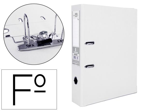 Classeur en carton contrecollé de 1,9 mm d'épaisseur. Recouvert de PVC. Avec mécanisme à levier et compresseur métallique. Coins longs. Avec porte-étiquette sur le dos. Avec Rado® et oeillet. Garde imprimée en couleur.