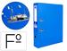 Classeur en carton contrecollé de 1,9 mm d'épaisseur. Recouvert de PVC. Avec mécanisme à levier et compresseur métallique. Coins longs. Avec porte-étiquette sur le dos. Avec Rado® et oeillet. Garde imprimée en couleur.