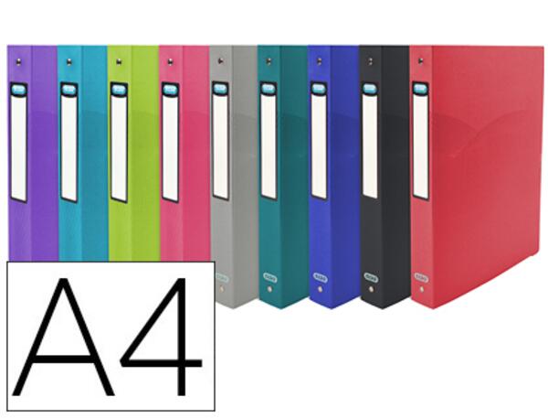 Épaisseur 5/10ème. Grain moderne et résistant. Motif spirale. Étiquette adhésive au dos. 4 anneaux ronds de 15 mm de diamètre. Dos de 20 mm. Capacité : environ 100 feuilles. Pour format A4. Coloris opaques aléatoires. Dimensions : 245 x 310 mm.