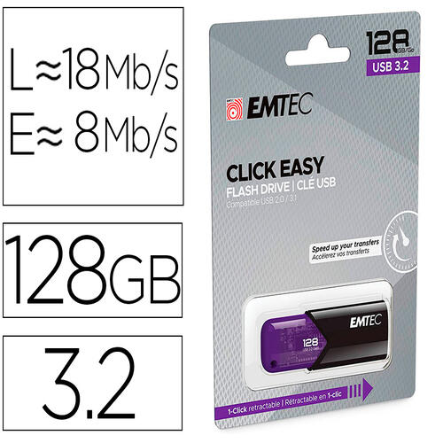 Découvrez la clé USB EMTEC 3.2 B110 Click Easy de 128 Go en coloris violet, une solution idéale pour le transfert et le stockage rapide de vos données. Avec son design tendance et ses performances avancées, elle s'adapte parfaitement à vos besoins quotidiens, que ce soit pour le travail ou le divertissement.