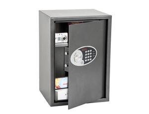 Conçu pour le rangement d'objets de valeur, d'argent et de documents importants. Serrure électronique haute qualité, facile d'utilisation, haute sécurité, anti-sabotage et anti-rebond. Blocage de sécurité après 3 saisies erronées. Système d'ouverture d'urgence à clé incluant 2 clés. Plaque d'acier de 5 mm pour la porte et 2 mm pour les parois. Deux pênes de verrouillage, charnières intérieures cachées. Valeur assurable de 1000 ' d'argent liquide ou 10 000 ' d'objets de valeur. Fixation mur ou sol avec visserie fournie (murs à brique ou sols ciment). Finition peinture anti-rayure graphite métallisée.