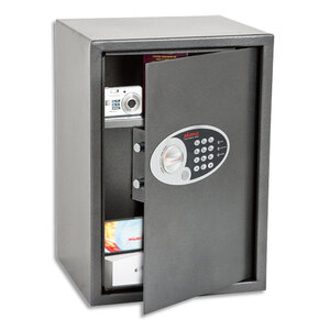 Pour le stockage à la maison ou au bureau d’objets de valeur, d’argent et des documents importants. Valeur assurable recommandée de 1000€ d’argent liquide ou 10,000€ d’objets de valeur. Porte en plaque d’acier de 5 mm et de parois de 2 mm, 2 pênes de verrouillage. 1 étagère, serrure électronique et charnières intérieures cachées pour une sécurité supplémentaire. Système de verrouillage électronique anti-sabotage et anti-rebond. Equipés d’un dispositif d’ouverture d’urgence à clef en cas d’oubli du code (2 clés fournies). Couleur graphite métallisée avec finition peinture anti-rayures. Visserie de fixation mur fournie. La version avec fente est destinée au dépôt. Piles AA LR6 fournies.