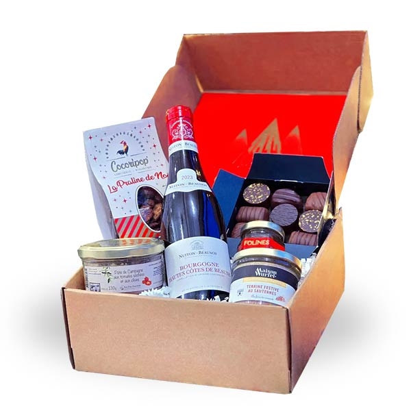 Redécouvrez les saveurs authentiques du terroir français avec le coffret gourmand "Tradition". Entre vin d’exception, terrines artisanales et douceurs sucrées, ce coffret réunit tout le charme d’un Noël chaleureux et généreux.