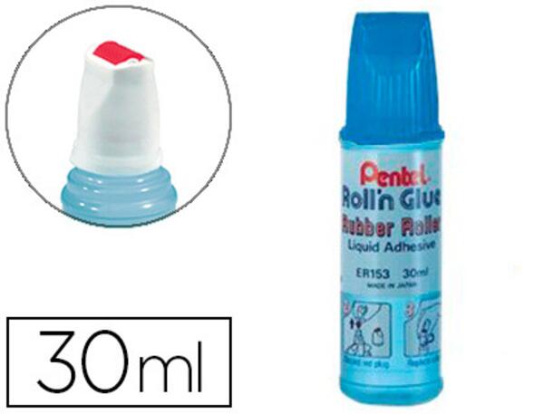 COLLE PENTEL ROLL'N GLUE ROULETTE CAOUTCHOUC PAPIER CARTON INODORE LAVABLE TRANSPARENTE FLACON 30ML