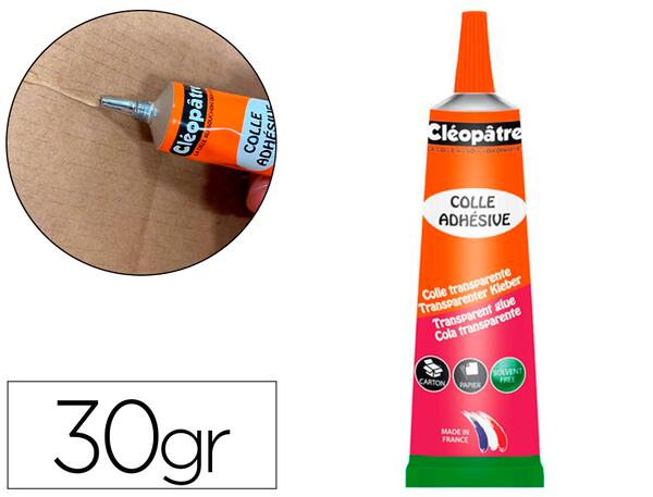 Découvrez la colle transparente Cléopâtre universelle, un indispensable pour tous vos projets de collage. Ce tube en aluminium de 30 grammes est idéal pour une utilisation à la maison, à l'école ou au bureau grâce à sa formule sans solvant et à son embout fin qui facilite une application précise.