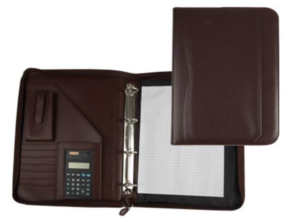 Conférencier en plastique. Fermeture zip. Contient un bloc-notes A4, des compartiments pour calculatrice, stylos et cartes, ainsi qu'une pochette pour téléphone portable et une pochette pour ranger des documents. Format A4. Dimensions : 355 x 260 x 10 mm.
