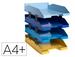 Plastique recyclé post consommation. Capacité 500 feuilles. Superposable à la verticale ou en escalier. Porte-étiquette. Garantie 25 ans. Pour format A4+. Dimensions : 346 x 254 x 65 mm. Produit certifié Ange Bleu.