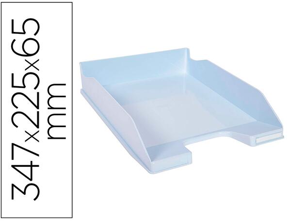Corbeille à courrier en polystyrène pour documents au format A4 +. Solide et stable. Superposable à la verticale ou en escalier. Coloris pastels. Dimensions : 347 x 255 x 65 mm.