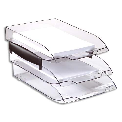 En polystyrène choc brillant. Superposable et décalable. Patins antidérapants. Pour documents jusqu’au format 24 x 32 cm. 2 zones d’indexation possibles.