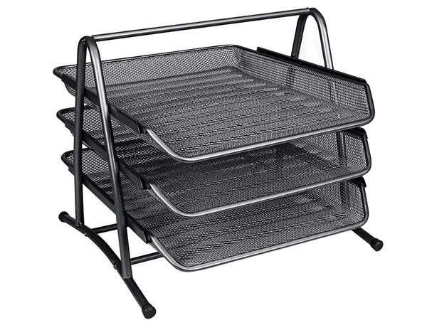En maille métallique pour documents A4. Dimensions d'une corbeille : 350 x 278 x 275 mm. Set de 3 unités. Coloris: Noir.