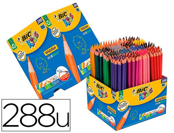 BIC Kids Evolution ECOlutions Crayons de Couleur Class Pack 210+78 Corps hexagonal coloré - Résine de synthèse - Pas d'écharde en cas de bris - Mine super solide - 12 Couleurs vives - Facile à tailler - Fabriqué à partir de 51% de matière recyclée *Taux de matière recyclée hors consommables (cartouches, encre, recharge ou mines et hors packaging