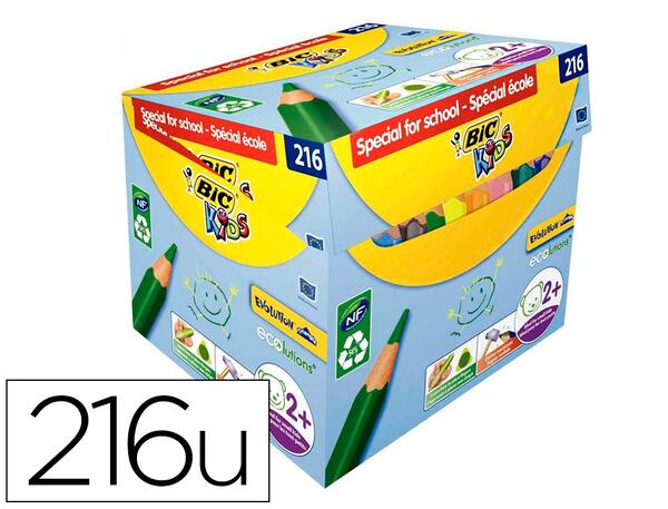 BIC Kids Evolution Triangle ECOlutions Crayons de Couleurs Triangulaires - Couleurs Assorties, Maxi Classpack Format Ecole de 186 + 30 adaptés aux enfants dès 2 ans. Fabriqués sans bois, les crayons résistent au mordillage et ne donnent aucune écharde en cas de casse. Fabriqués en France à partir de 50% de matériaux recyclés, ils sont certifiés par l'écolabel NF.