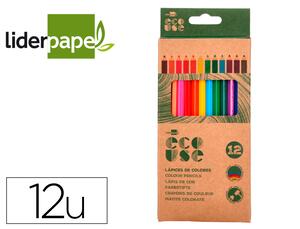 Crayon Couleur Liderpapel Certifié FSC Mine Extra-Résistante Ecouse Étui Carton de 12 Coloris Assortis