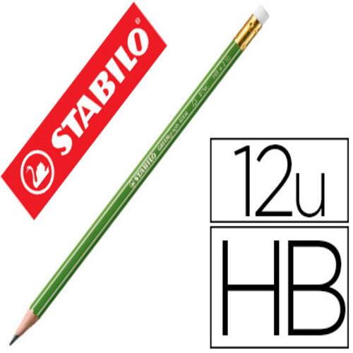 Crayon Graphite STABILO Greengraph Hexagonal Bois FSC Vernis Mat Mine Ultra Résistante HB Bout Gomme