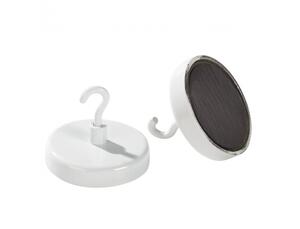 Le crochet se visse au support. Hauteur 3,2 cm. Se fixe sans percer sur toute surface métallique. Revêtement émaillé, coloris blanc.Dim. : Ø 2,5 cm - Force 0,5 kg - Le lot de 3