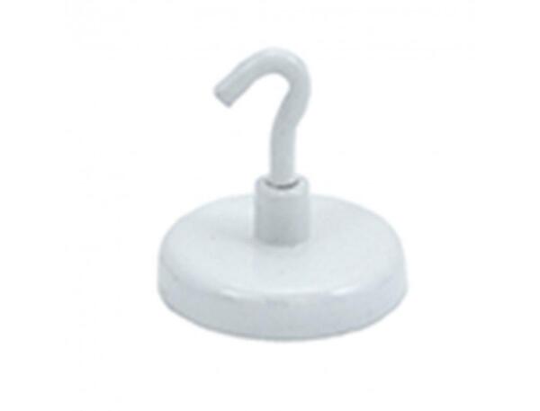 Le crochet se visse au support. Hauteur 3,2 cm. Se fixe sans percer sur toute surface métallique. Revêtement émaillé, coloris blanc.Dim. : Ø 3,6 cm - Force 10 kg - Le lot de 2