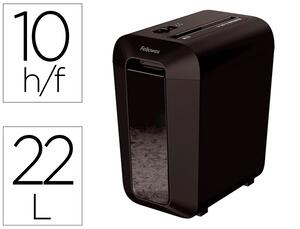 Coupe croisée. Niveau de sécurité P-4. Détruit 10 feuilles par passage. Détruit continuellement jusqu'à 6 minutes avant une période de refroidissement de 20 minutes. Accepte agrafes, trombones, cartes de crédit. Corbeille de 22 L. Technologie Safe Sense pour la sécurité de l'utilisateur. Idéal pour utilisation individuelle ou petit bureau. Dimensions : 407 x 233 x 371 mm. Poids : 5,3 kg.