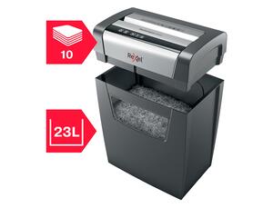 Détruit jusqu'à 10 feuilles en une fois. Niveau de sécurité élevé : Coupe croisée P4 Particules de 4x30mm. Temps de fonctionnement de 6 minutes. Technologie anti-bourrage - Stoppe le destructeur et ressort automatiquement les feuilles lorsque l'on insère trop de papier. Détruit facilement tout type de documents avec agrafes et trombonnes. Interface tactile pour une opération simple et intuitive. Large corbeille de 23 litres pouvant contenir jusqu'à 225 feuilles. Opération ultra silencieuse pour un environnement plus calme. Garantie 2 ans