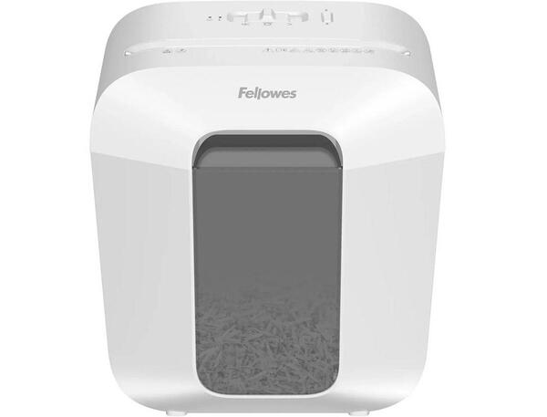 Destructeur de documents électrique Powershred LX25 de couleur blanc. Niveau de sécurité P-4. Capacité de coupe jusqu'à 6 feuilles de 80 g/m². Capacité 11,5 l.