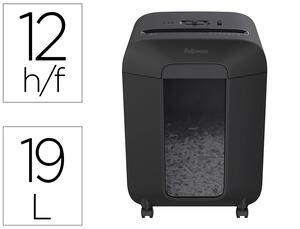 Idéal pour une utilisation fréquente dans les petits bureaux et les bureaux à domicile. Détruit 12 feuilles en particules de 4 x 40 mm, coupe croisée (DIN P-4). La technologie brevetée SafeSense arrête la destruction lorsqu'une main s'approche de la fente d'insertion. Cycle de fonctionnement étendu de 20 minutes. Corbeille extractible de 19 L. Détruit également agrafes, trombones et cartes de crédit. Dimensions : 470 x 341 x 246 mm. Poids : 6,6 kg.