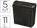 Détruit jusqu'à 5 feuilles A4 par passage en bandelettes de 7 mm de large et pendant 3 min maximum. Niveau de sécurité DIN P-1. Coupe droite. Corbeille de 11 L. Dimensions : 286 x 153 x 299 mm. Poids : 1,63 kg.
