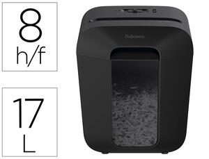 Pour une utilisation modérée à la maison, en télétravail ou bureau individuel. Détruit 8 feuilles en particules de 4 x 37 mm en coupe croisée (DIN P-4). Technologie de verrouillage sécurisé pour une protection maximale. Détruit continuellement pendant 6 minutes avant une période de refroidissement de 20 minutes. Corbeille de 17 L. Détruit agrafes, cartes de crédit et trombones. Dimensions : 401 x 310 x 220 mm. Poids : 4,1 kg.
