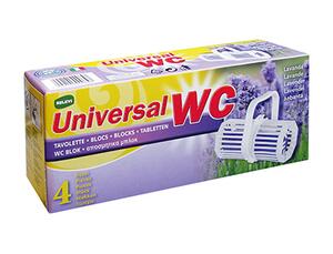 Bloc à accrocher dans la cuvette des WC. Nettoie, détartre et parfume. Parfum lavande. Paquet de 4 blocs.
