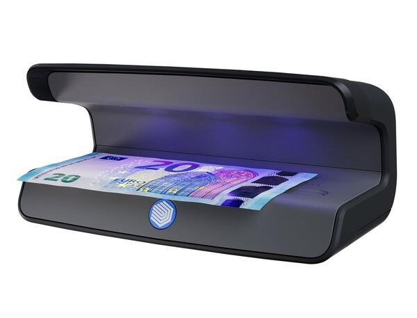 Détecteur de faux billet alimenté par 3 LED UV puissantes. Vérification toute devise sur les 2 faces. Vérification des documents officiels (passeports, cartes de crédit, documents d'identification). Capteur de mouvement pour l'allumage/extinction. Arrêt automatique. Inclus : câble d'alimentation USB-C de 1,5m avec convertisseur USB-A. Dimensions : 17,1 x 9,1 x 8,2 cm.