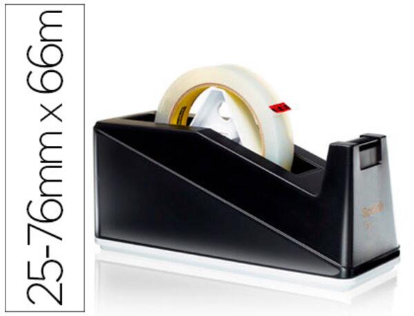Dévidoir lourd pour ruban adhésif de 25 et de 76 mm. Livré sans ruban. Coloris noir. Dimensions : 209 x 96 x 84 mm.