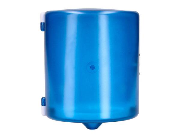 Fermeture avec serrure et 2 clefs incluses pour recharger le papier. Coloris : corps bleu/base blanche. Dimensions du distributeur : 225 x 275 x 220 mm.