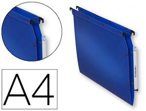 En polypropylène 50/100ème. Mise en continu par boutons-pression. Entraxe de 330 mm. Hauteur de 275 mm. Barrette de suspension en acier plat à embouts plastique surmoulés. Plus grande durabilité grâce au système d'assemblage par rivets métal renforcés par thermosoudure. Renfort des dos larges via une bande de polypropylène épaisseur 8/10ème, noire, striée et rivetée. Solidité maximale, les dossiers ne glissent pas. Grand porte-étiquette orientable en 3 positions. Dimensions : 110 x 350 x 275 mm. Boîte de 10 unités.
