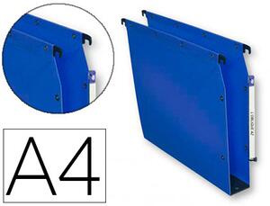 En polypropylène 50/100ème. Mise en continu par boutons-pression. Entraxe de 330 mm. Hauteur de 275 mm. Barrette de suspension en acier plat à embouts plastique surmoulés. Plus grande durabilité grâce au système d'assemblage par rivets métal renforcés par thermosoudure. Renfort des dos larges via une bande de polypropylène épaisseur 8/10ème, noire, striée et rivetée. Solidité maximale, les dossiers ne glissent pas. Grand porte-étiquette orientable en 3 positions. Dimensions : 110 x 350 x 275 mm. Boîte de 10 unités.