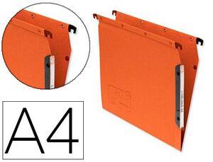 Carte en kraft couleur 240 g/m². Mise en continu par boutons-pression. Entraxe : 330 mm. Hauteur : 275 mm. Barrettes de suspension en acier plat à embouts surmoulés en plastique. Grand porte-étiquette orientable 3 positions. Dimensions : 350 x 275 mm. Produit certifié Ange Bleu.