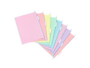 8 DOSSIERS SUSPENDUS A4 POLYPROPYLENE - RAINBOW PASTEL Dimensions : 35X23.8CM Onglets Amovibles Planche d'étiquettes pour les onglets Conviennent Aussi Pour Tiroirs Coloris : Rose - Rose clair - Violet - Bleu - Vert - Jaune