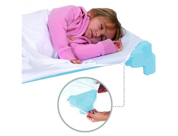 Drap double fait comme un sac de couchage. Réglable avec 4 bandes élastiques pour le fixer au lit. Dim. (L x l) : 58 x 131 cm - L'unité