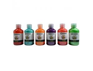 Assortiment de 6 flacons de 250 ml - Orange, turquoise, rouge carmin, violet, rose tyrien et vert printemps