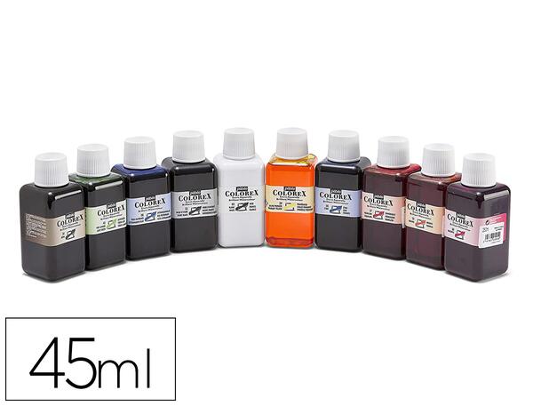 Assortiment de 10 encres Colorex 45 ml, Encre aquarelle transparente base colorant. Extrême vivacité des couleurs, rendu velouté et aplats parfaitement unis. Les couleurs sont miscibles entre elles et s'appliquent pures ou diluées. Idéal pour illustration aquarelle, BD, manga, design, calligraphie et art journaling.base colorant, de qualité fine, avec une finition veloutée