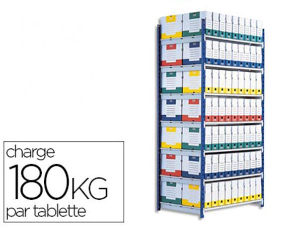Structure et tablettes en acier hyper résistant, finition époxy gris et bleu. Montage très simple : tout s'emboîte sans outil ni vis. 5 niveaux de rangement, 7 niveaux avec le lot de 2 tablettes supplémentaires. Charge utile : 180 kg par tablette. Dimensions : 200 x 34 x 100 cm et 200 x 68 x 100 cm.