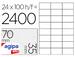 Ces étiquettes adhésives blanches au format 70 x 35 mm sont spécialement conçues pour les imprimantes laser et copieurs. Leur papier de qualité assure un séchage rapide de l'encre et offre une impression nette, résistante à la chaleur et aux vitesses d'impression élevées. Présentées en boîte de 2400 unités, elles répondent aux besoins d'étiquetage variés, qu'il s'agisse d'adresses, de codes-barres ou de gestion d'inventaire, tout en garantissant une excellente adhérence sur plusieurs types de surfaces.