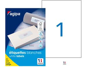 Étiquettes autocollantes blanches compatibles avec toutes les imprimantes à jet d'encre, laser et copieurs disponibles sur le marché. Technologie anti-bourrage. Excellent rendu d'impression. Certains formats sont adaptés au service « Mon timbre en ligne ». Planche au format A4. Boîte de 100 feuilles. Produit certifié FSC.