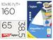 Étiquettes autocollantes blanches multi-usages (écriture manuelle, mécanographie, copieurs, imprimantes jet d'encre et laser). Format A5. Adhésif permanent. Technologie anti-bourrage. Coins arrondis. Étui de 16 feuilles. Produit certifié FSC.