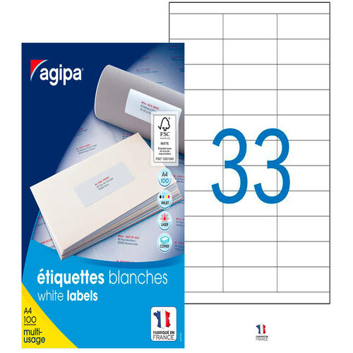 Étiquettes autocollantes blanches compatibles avec toutes les imprimantes à jet d'encre, laser et copieurs disponibles sur le marché. Technologie anti-bourrage. Excellent rendu d'impression. Certains formats sont adaptés au service « Mon timbre en ligne ». Planche au format A4. Boîte de 100 feuilles. Produit certifié FSC.