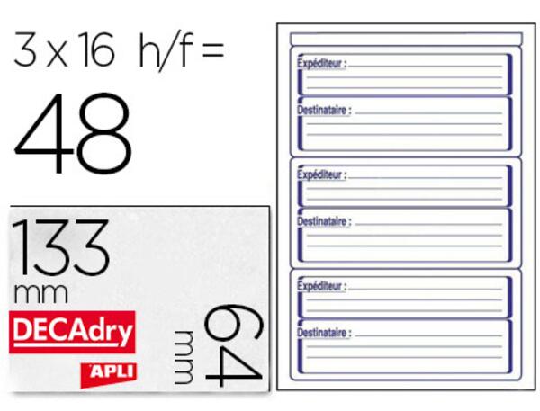 Étiquettes blanches et bleues. Format A5. Compatibles avec les imprimantes jet d'encre, laser et copieurs. Technologie anti-bourrage. Coins arrondis. Étui de 48 étiquettes. Produit certifié FSC.