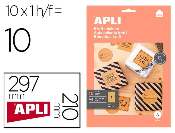 Étiquettes couleur kraft avec un adhésif permanent. Idéal pour étiqueter les pots, dossiers, carnets, boîtes, cadeaux, invitations, etc. Excellente qualité d'impression aux imprimantes jet d'encre. Paquet de 10 feuilles.