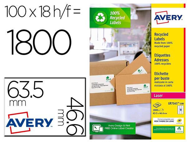 Étiquettes blanches 100% recyclées, fabriquées sans chlore. Compatibles avec les imprimantes laser. Garanties sans bourrage. Faciles à décoller de la planche grâce à la bande micro-perforée. Boîte de 100 feuilles. Produit certifié FSC.