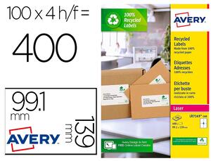Étiquettes blanches 100% recyclées, fabriquées sans chlore. Compatibles avec les imprimantes laser. Garanties sans bourrage. Faciles à décoller de la planche grâce à la bande micro-perforée. Boîte de 100 feuilles. Produit certifié FSC.