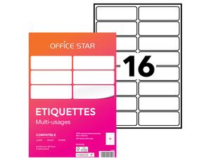 1600 étiquettes OFFICE STAR blanches 99,1 x 33,9 mm, impression Laser, Jet d'encre, Copieur