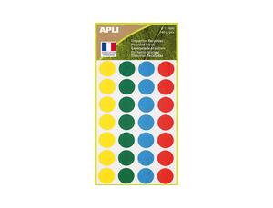 Pastilles de couleurs assorties. Adhésif acrylique à base d'eau, film et étiquettes 100% recyclables. Produit certifié FSC.