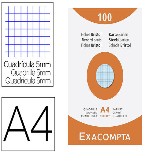 Fiches bristol quadrillee 5x5 non perforrees 210g paquet de 100 fiches