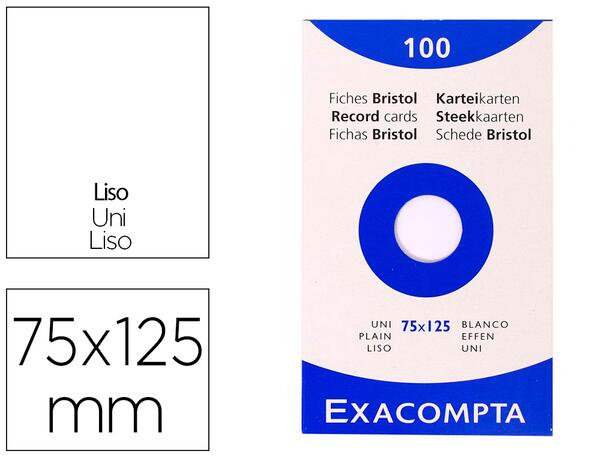 Fiches Bristol non perforées. Coloris blanc. Etui de 100 unités.